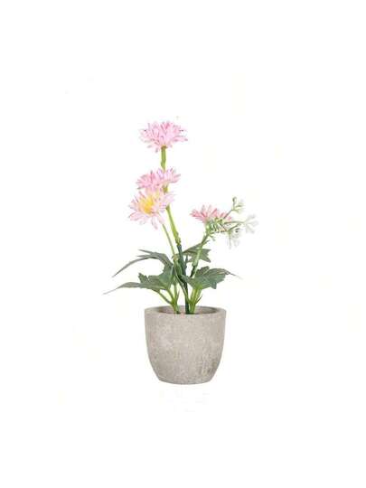 1 件迷你粉色非洲菊雏菊盆栽植物组合,桌面装饰人造花卉插花 - FY4001A-粉紅小野菊 - 查看 1