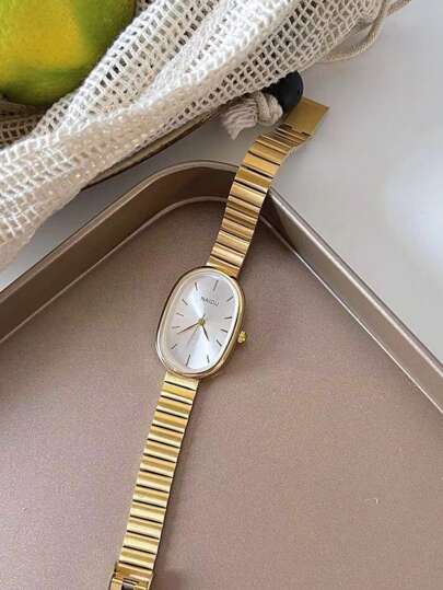 1 件简约竹节链表带方形表盘石英腕表,适合作为生日、万圣节礼物 - 金色 - 查看 1