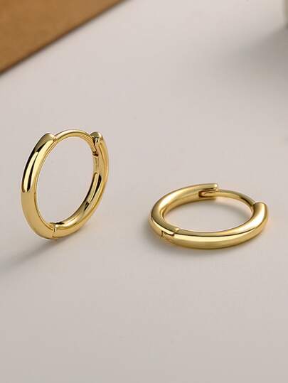 1入組極簡風格圓形形狀耳環 - 金色 - 查看 1