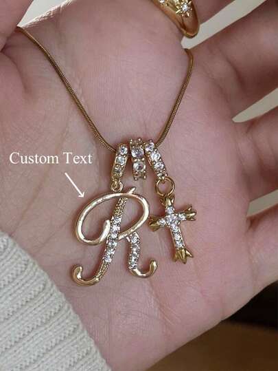 1件简约立方氧化锆心形宝石字母DIY项链,可定制简约字母名字项链,不锈钢字母吊坠项链,时尚礼物,适合送给女友、妈妈、家人、朋友,周年纪念日、情人节、母亲节、生日、毕业典礼、休闲装、婚礼、派对等场合。 - 金色 - 查看 1