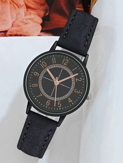1入組極簡輕便女士PU皮革帶石英表帶塑膠殼套 - 黑色 - 查看 1