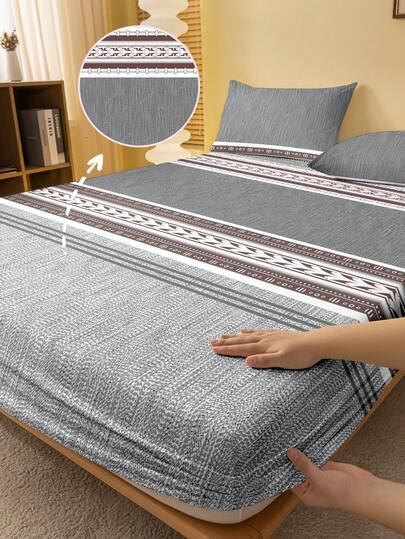 1件简约现代几何灰色和咖啡色拼接图案印花磨毛床笠,卧室印花床罩,床上用品(不含枕套)