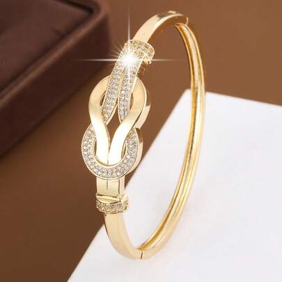 1件简约扭绳结设计人造锆石镶嵌女士时尚手链 - 彩色 - 查看 1