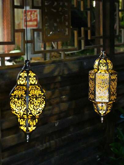 1个摩洛哥风格太阳能镂空灯笼 - 激光切割几何户外灯具,IP65防水,营造地中海花园装饰氛围