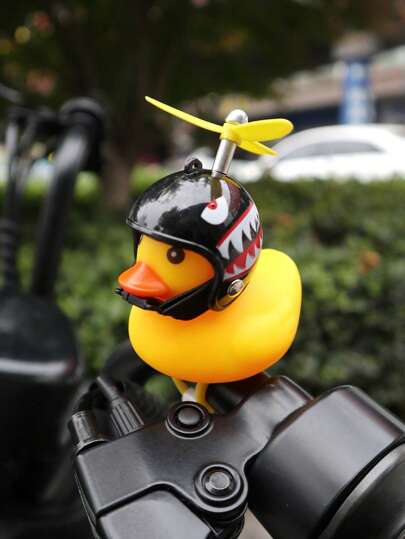 1只帶頭盔的機車鴨子,電瓶車反光鏡,抗風鴨子,公仔鴨子,自行車裝飾,電動車竹蜻蜓鴨子 - 黃色 - 查看 10