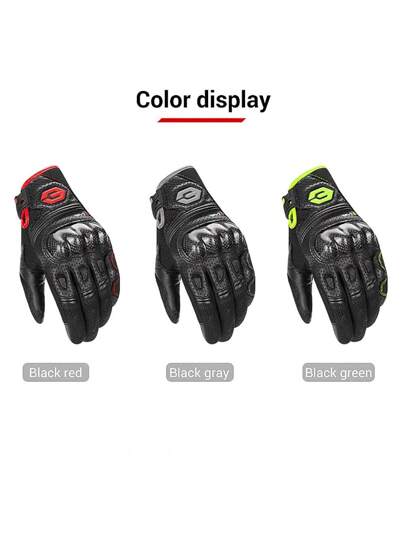 1 件摩托车手套全指触屏骑行手套摩托车夏季透气手套越野赛车带碳纤维指关节保护可调节骑行配件 - 彩色 - 查看 1