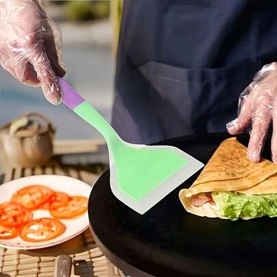 1支装多色多功能硅胶铲 - 不粘、耐热、符合人体工学的手柄,适用于烹饪、搅拌和烧烤 - 可用于煎饼、牛排等 - 符合人体工学的手柄设计,经久耐用的厨房工具,玉石铲,煎锅铲,宽煎饼铲,不粘耐热煎饼铲,女士礼物