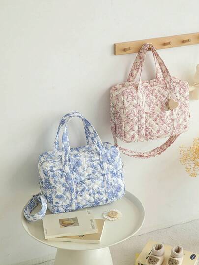 1 件多功能大容量绗缝妈咪包,带婴儿车挂钩