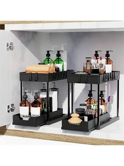 1 件多功能拉出式水槽下储物架 - 适用于厨房和浴室的双层储物架,非常适合存放香料和手,耐用塑料带金属支架,实用的整理器 - 彩色 - 查看 2