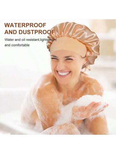 1個多功能女士美容睡眠帽,舒適護髮緞面防水浴帽 - 卡其色 - 查看 1