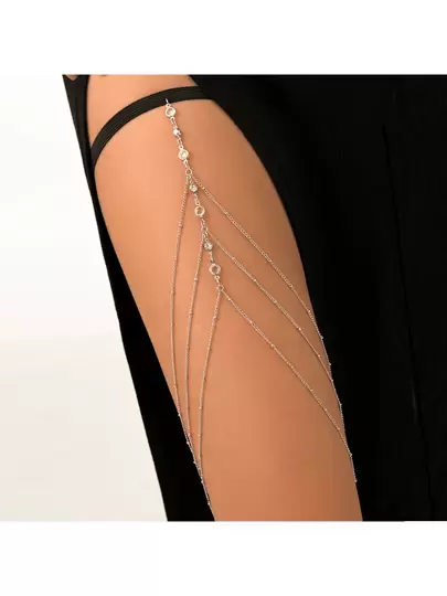 1 件多层腿链,带水钻串珠链,金色/银色性感身体链,适合狂欢 - 銀色 - 查看 1