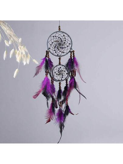 1只風格的捕夢網,配有羽毛和風鈴,可用於房間裝飾,也可以手工製作成陽台、起居室和臥室的掛牆裝飾 - 灰色 - 查看 6