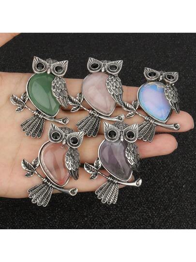 1入組天然水晶貓頭鷹療癒水晶石頸鍊,附3d珠寶展示盒,女性天然紫晶石玫瑰石英寶石頸鍊 - Owl Necklace Set - 查看 8