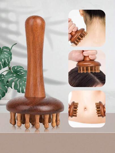 1 件天然檀香宽齿按摩梳,带手柄,圆头,适用于头皮、身体、背部、颈部、肩部和腹部按摩,小巧便携,适合返校、旅行度假必备,女士发饰 - 棕色 - 查看 10