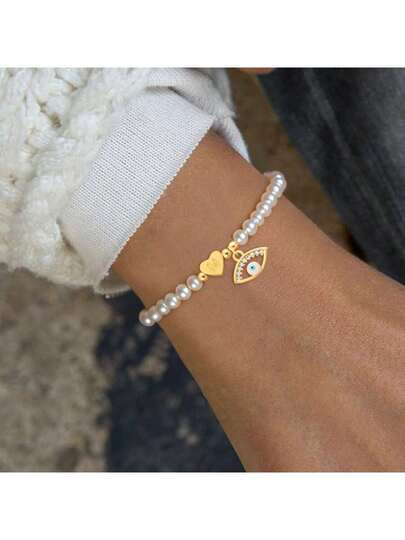 1件新款经典眼睛心形字母吊坠串珠手链,女士款 - 白色 - 查看 1