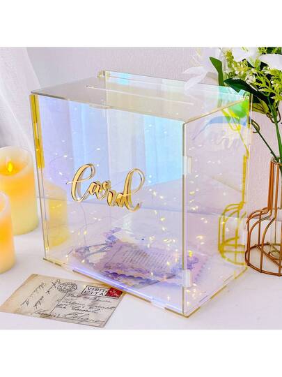 1入新設計婚禮卡盒七彩亮光亞克力材質 (25.5*25.5*15cm),附2米40盞led串燈*1和卡片*1,透明卡片收納盒,派對婚禮節日生日新年禮物裝飾 - 彩色 - 查看 1