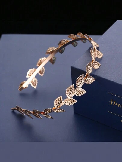 1 件新款欧美风格金属皇冠和叶子头带,适合新娘,金色巴洛克树叶发饰万圣节 - 金色 - 查看 1