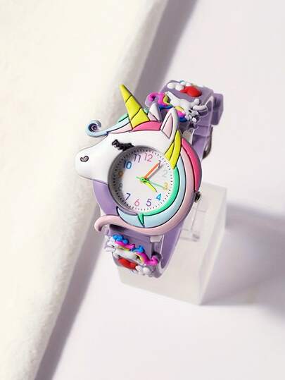 1 件新款时尚可爱独角兽石英手表,送给女孩的礼物 - 彩色 - 查看 1