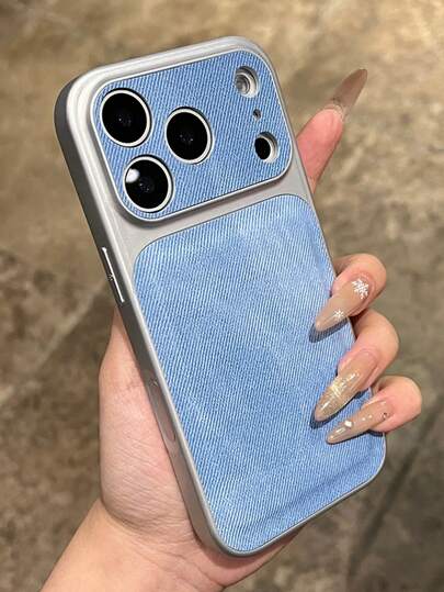 1个新款大窗口电镀框扎染牛仔帆布兼容 17/16/15/14 Pro Max牛仔软TPU后盖 - 淺藍色 - 查看 1