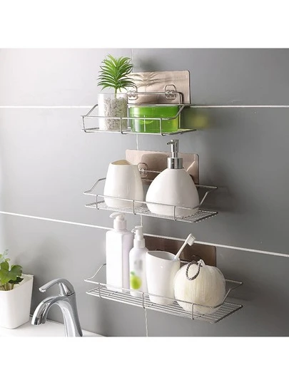 1 件免钻浴室淋浴架 - 銀色 - 查看 1