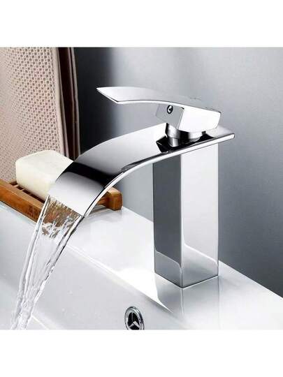 1个北欧黑色铜瀑布式水龙头,冷热水单孔面盆水龙头,浴室配件,浴室工具 - 銀色 - 查看 1