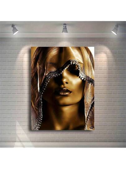 1件北歐風格帆布印花海報,金色化妝女性油畫帆布壁畫,浴室臥室辦公室客廳牆壁裝飾,家居裝飾,沒有相框