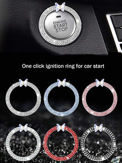 1 件装一键启动装饰环汽车双排水晶蝴蝶点火环点火开关按钮装饰保护 - 均碼 - 查看 6