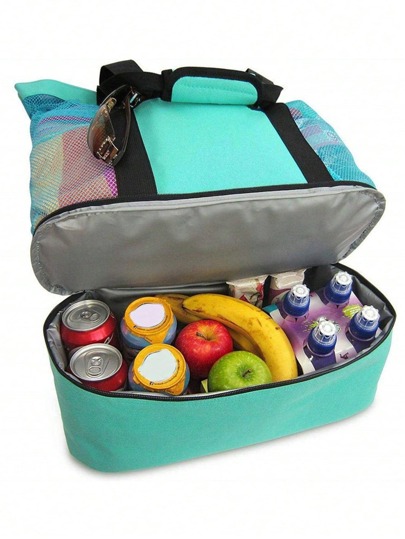 1入組戶外旅遊野餐袋,保冷冰袋,網眼海灘袋露營 - 青碧色 - 查看 6
