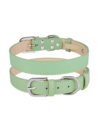 1 件 PU 皮革纯色宠物项圈双环扣防掉落设计适用于狗狗 - 薄荷綠 - 查看 1
