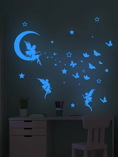 1 件 PVC 墙贴,时尚月亮和仙女图案夜光墙贴,适用于家居装饰,翻新贴纸,可撕墙板,墙纸,壁纸,春季装饰品让您的家焕然一新,拉玛装饰贴纸 - 彩色 - 查看 1