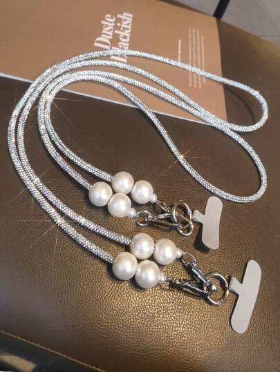 1 件珍珠和水钻加厚手机挂绳,奢华长带项链绳,带扣斜挎单肩链 - 彩色 - 查看 1