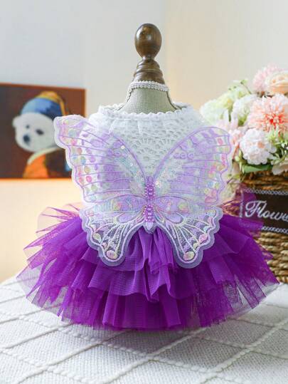 1 件宠物狗猫公主薄纱裙连衣裙 - 紫色 - 紫色 - 查看 1
