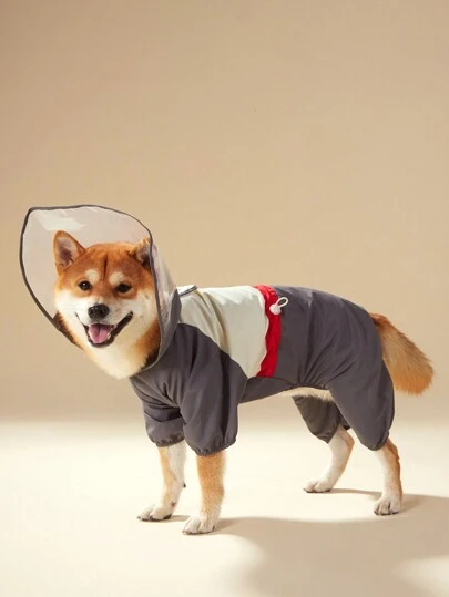 Review: Much smaller than expected, I couldn’t get all her legs in because of how tight it was. I will have to re-order and I cannot return this one. Colour not as bright as pics. Decent quality. Love the clear hood, perfect for keeping our dog’s head dry.
