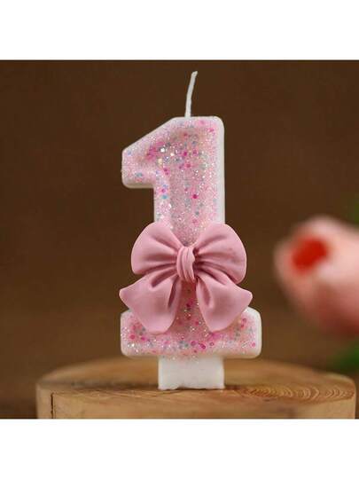1 件粉色蝴蝶结生日蜡烛,0-9 创意数字蜡烛女孩粉色蝴蝶结生日蜡烛,可爱主题数字蜡烛,派对庆祝 - 粉色 - 查看 1