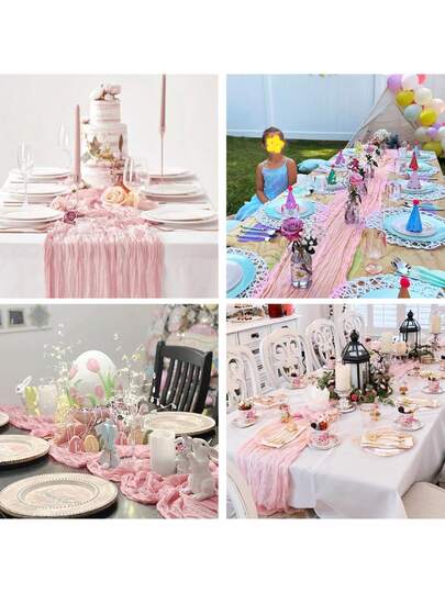 1個粉色芝士布桌布波西米亞紗布芝士布鄉村透明桌布,適用於婚禮、新娘派對、嬰兒派對、生日派對或假日派對、蛋糕展示和浪漫晚宴桌面裝飾橫幅 - 粉色 - 查看 6