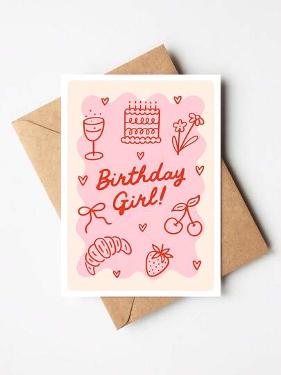 1张粉色波浪涂鸦生日贺卡,附带信封 - 可爱的生日贺卡,适合送给她的姐妹、闺蜜和好朋友,完美适用于16岁、18岁和21岁生日,内页空白可供书写。 - A - 查看 1