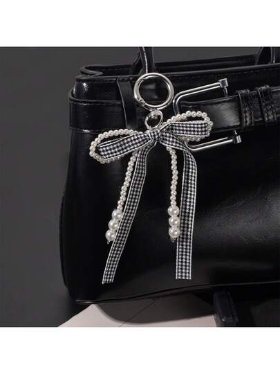 1 件格子蝴蝶结仿珍珠钥匙扣、背包配件、独特手机壳串珠装饰、极简主义蝴蝶结设计包配件挂绳带身份证夹汽车配件包饰 - 灰白格紋 - 查看 5