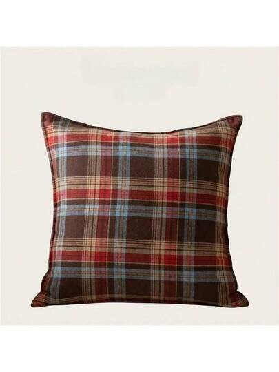 1 件格子靠垫套,复古经典装饰枕套,苏格兰风格沙发抱枕套,仅拉链可拆卸套,无插入物 - 豐收紅格 - 查看 1