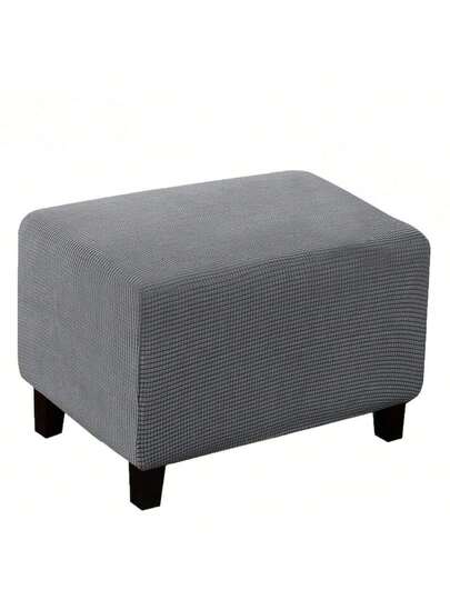 1 件纯色和格子长凳套,现代风格聚酯纤维矩形柏柏尔羊毛防尘凳套,适合客厅家居使用 - 深灰色 - 查看 1