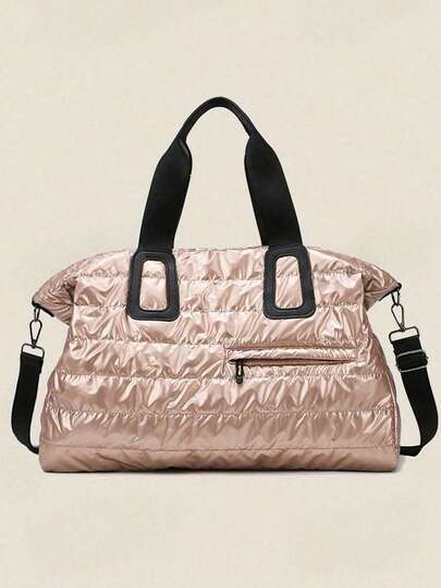 1个纯色涤纶手提袋,拉链封口,大容量旅行健身包,时尚简约,适合上学、旅行、健身、露营、邮轮、徒步旅行等各种场合,是夏季旅行度假的理想之选,女士适用。