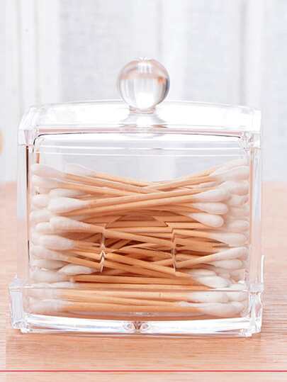 1个带盖塑料棉签收纳盒,现代透明棉签收纳盒,适用于家庭浴室配件 - 無色 - 查看 1