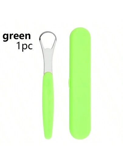 1 件裝帶手柄塑膠舌頭刮刀,口腔健康工具 - 綠色 - 查看 1