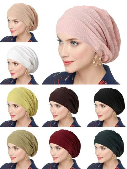 1 件装褶皱图案头巾女式纯色头巾女式褶边头巾头带适用于 Abaya 日常帽子面纱服装 - A - 查看 17