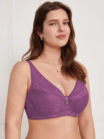 1 件大码对比色蕾丝钢圈文胸、内衣 - 紫色 - 查看 1