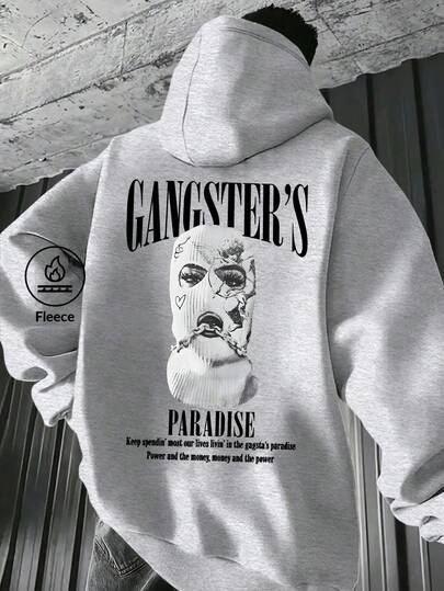 1件加大码男士休闲印花标语卫衣,秋冬季长袖上衣 - 灰色 - 查看 1
