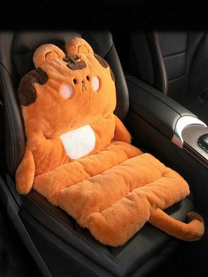 1件装毛绒汽车坐垫,可爱卡通腰部支撑垫,保暖增高座垫 - 棕色-老虎 - 查看 1
