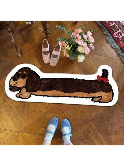 1件装毛绒腊肠犬地毯,柔软舒适的仿羊毛材质,1200克/平方米,TPR防滑底背,适用于卧室、客厅、室内家居装饰,圣诞礼物,可爱的宠物狗地毯,防滑且可机洗! - 彩色 - 查看 1