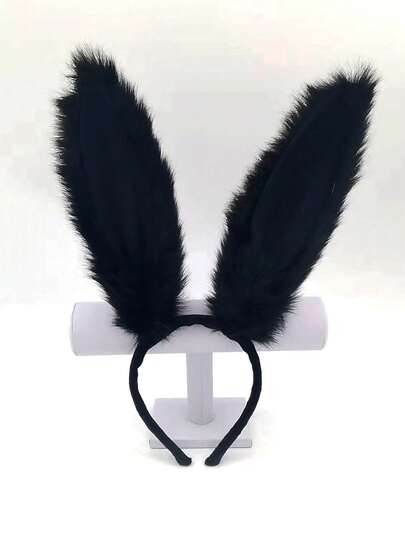 1 件毛绒超大黑色兔耳朵头带,化妆舞会、万圣节、复活节角色扮演、女仆/兔女郎服装的服装配饰 - 黑色 - 查看 1