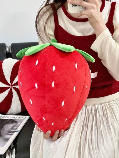 1 件毛绒草莓装饰抱枕,超柔软短毛绒面料,是送给闺蜜、居家/车内/午睡垫的理想礼物 - 彩色 - 查看 1
