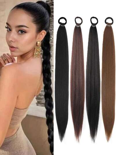 1 件装马尾假发 直马尾辫 可编成马尾辫接发 拳击辫 两用 DIY 适合女性日常穿着和聚会 - 彩色 - 查看 1